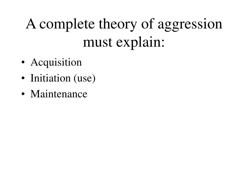 A complete theory of aggression must explain: • Acquisition • Initiation (use) • Maintenance
