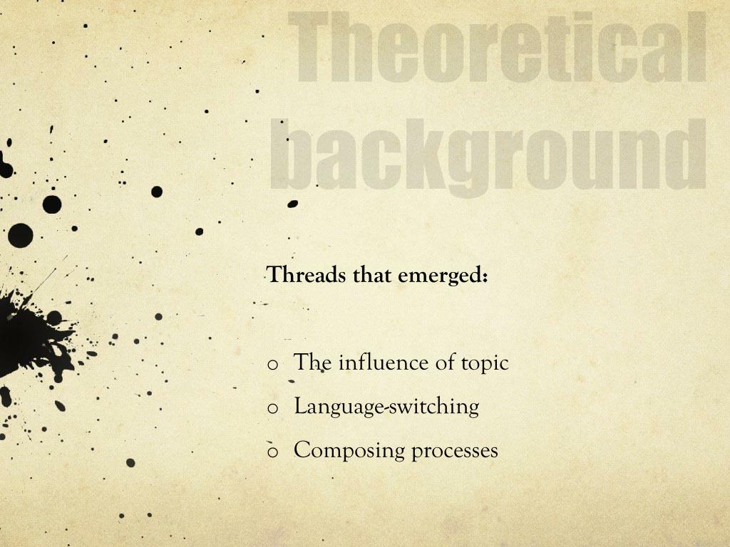 Theoretical background Threads that emerged: The influence of topic Language-switching Composing processes