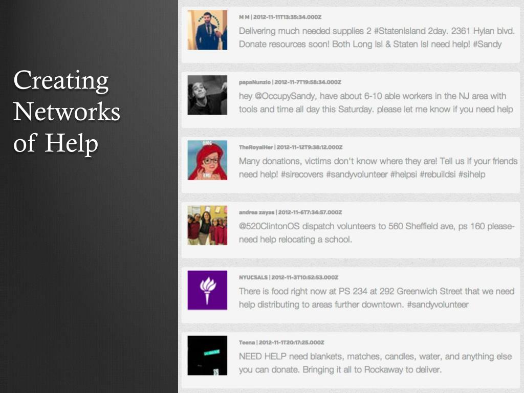 Organic Help Networks • Creating networks of help • Offers to help • Asking for help from organizations • Asking for help from followers