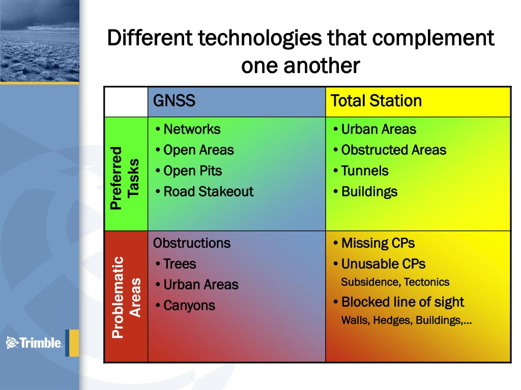 Ref Stn./ VRS GSM/GPRS/ Radio/WiFi Bluetooth 2.4 GHz Radio Integrated Surveying Trimble IS Rover • Robotic Instrument • GNSS Receiver • Robotic Pole • Controller