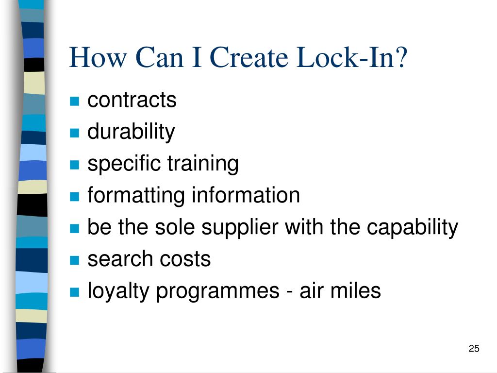 How Can I Create Lock-In? • contracts • durability • specific training • formatting information • be the sole supplier with the capability • search costs • loyalty programmes - air miles