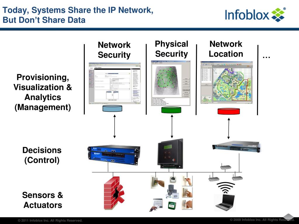 Today, Systems Share the IP Network, But Don’t Share Data Physical Security Network Location Network Security … Provisioning, Visualization & Analytics (Management) Decisions (Control) Sensors & Actuators
