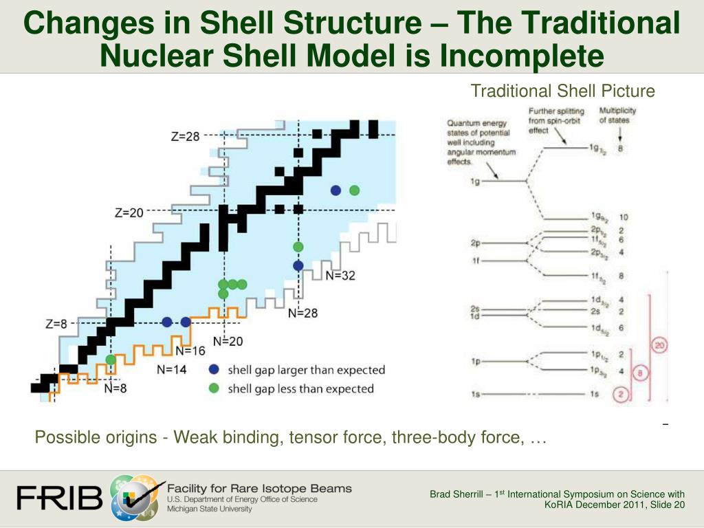 Changes in Shell Structure – The Traditional Nuclear Shell Model is Incomplete Traditional Shell Picture Possible origins - Weak binding, tensor force, three-body force, …