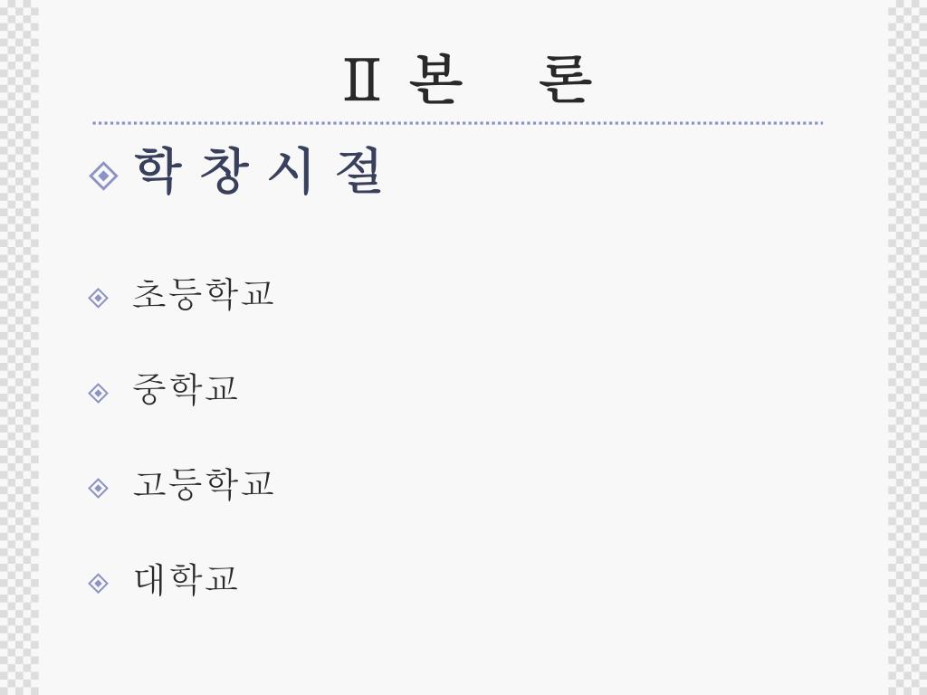 Ⅱ 본 론 • 학 창 시 절 • 초등학교 • 중학교 • 고등학교 • 대학교