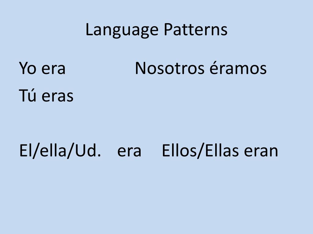LanguagePatterns Yo era Nosotros éramos Tú eras El/ella/Ud. era Ellos/Ellas eran