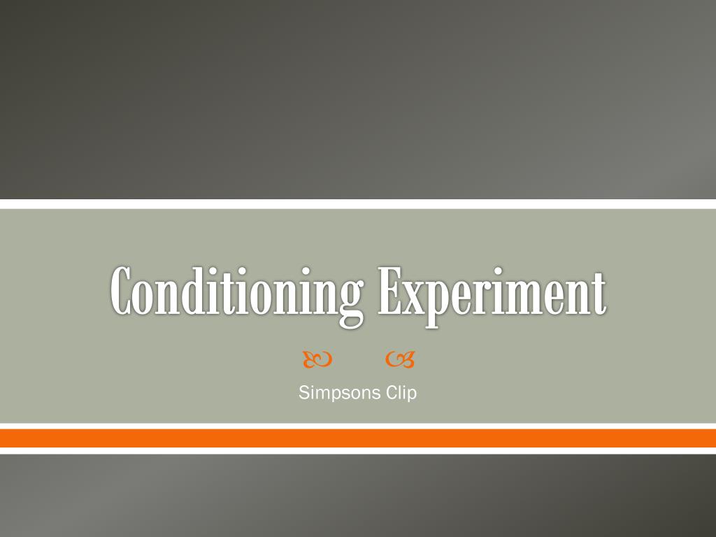 Conditioning Experiment BEFORE YOU LEAVE TODAY… • Complete the Conditioning Experiment handout (except the last question). • Create your: • Hypothesis • Steps for the experiment (explanation). • Type of conditioning • Stimulus (classical) or reinforcement (operant) DUE Wednesday, Nov. 9th