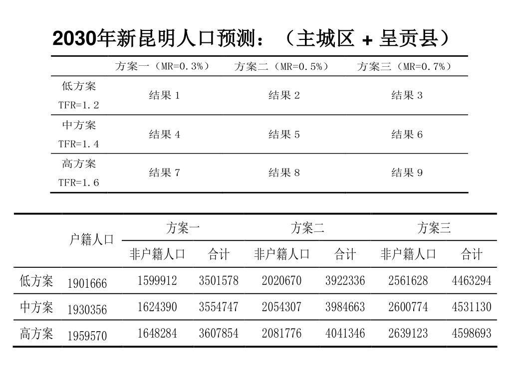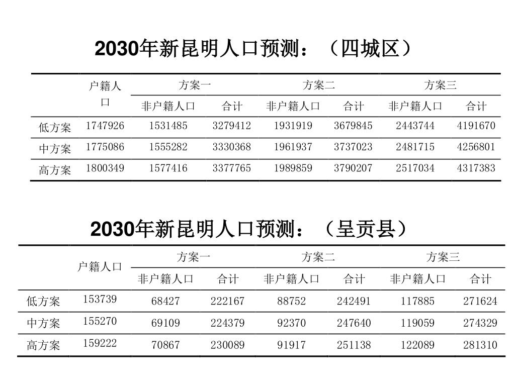2030年新昆明人口预测:(四城区) 2030年新昆明人口预测:(呈贡县)