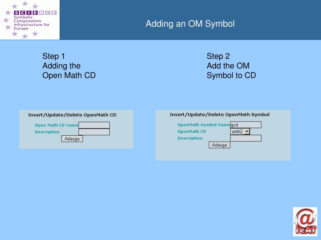 Adding an OM Symbol Step 2 Add the OM Symbol to CD Step 1 Adding the Open Math CD