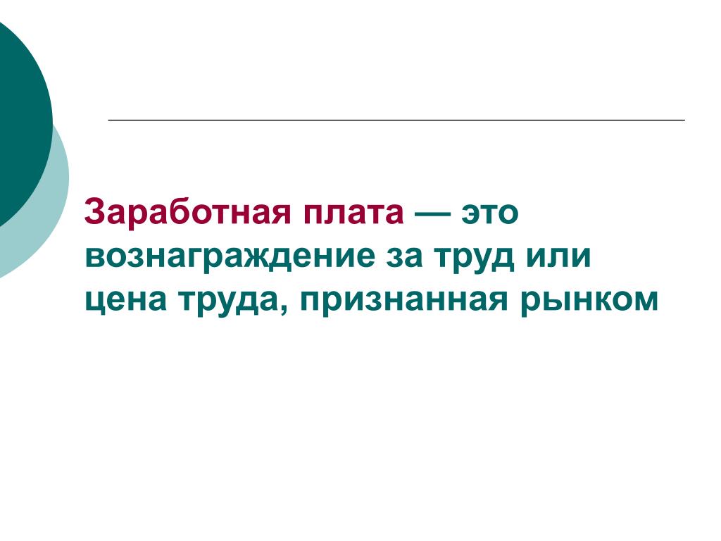 Заработная плата — это вознаграждение за труд или цена труда, признанная рынком