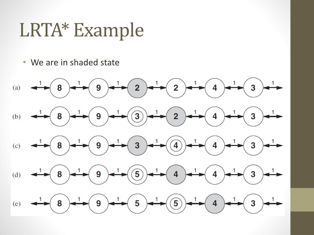 LRTA* Example • We are in shaded state