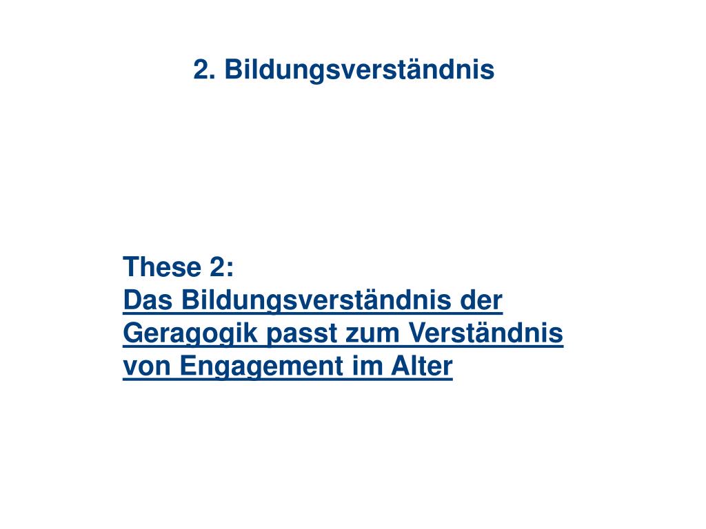 2. Bildungsverständnis These 2: Das Bildungsverständnis der Geragogik passt zum Verständnis von Engagement im Alter