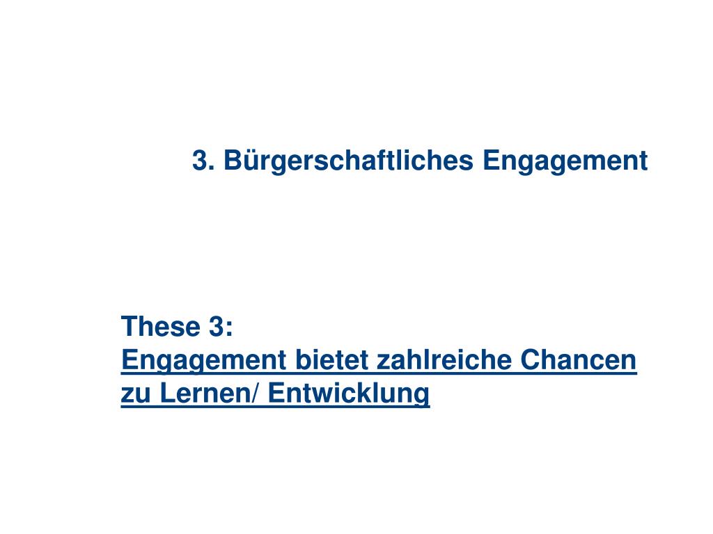 3. Bürgerschaftliches Engagement These 3: Engagement bietet zahlreiche Chancen zu Lernen/ Entwicklung