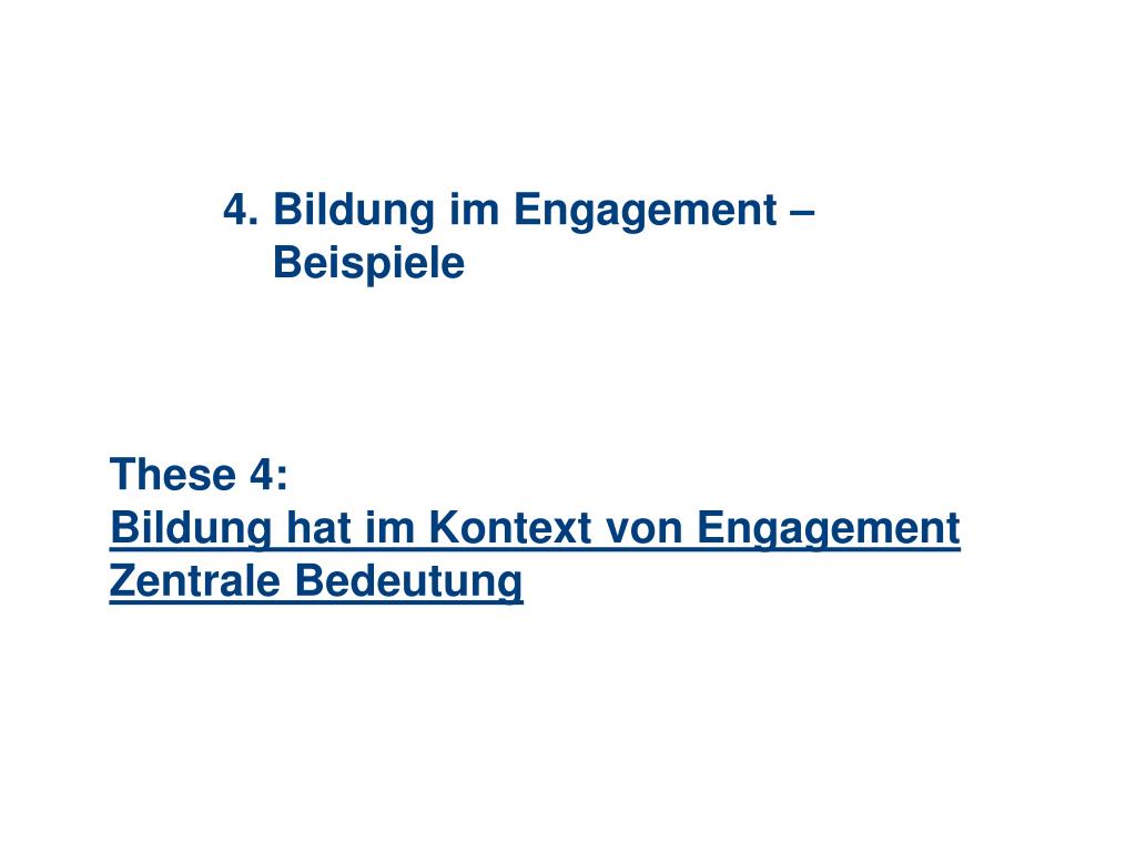 4. Bildung im Engagement – Beispiele These 4: Bildung hat im Kontext von Engagement Zentrale Bedeutung