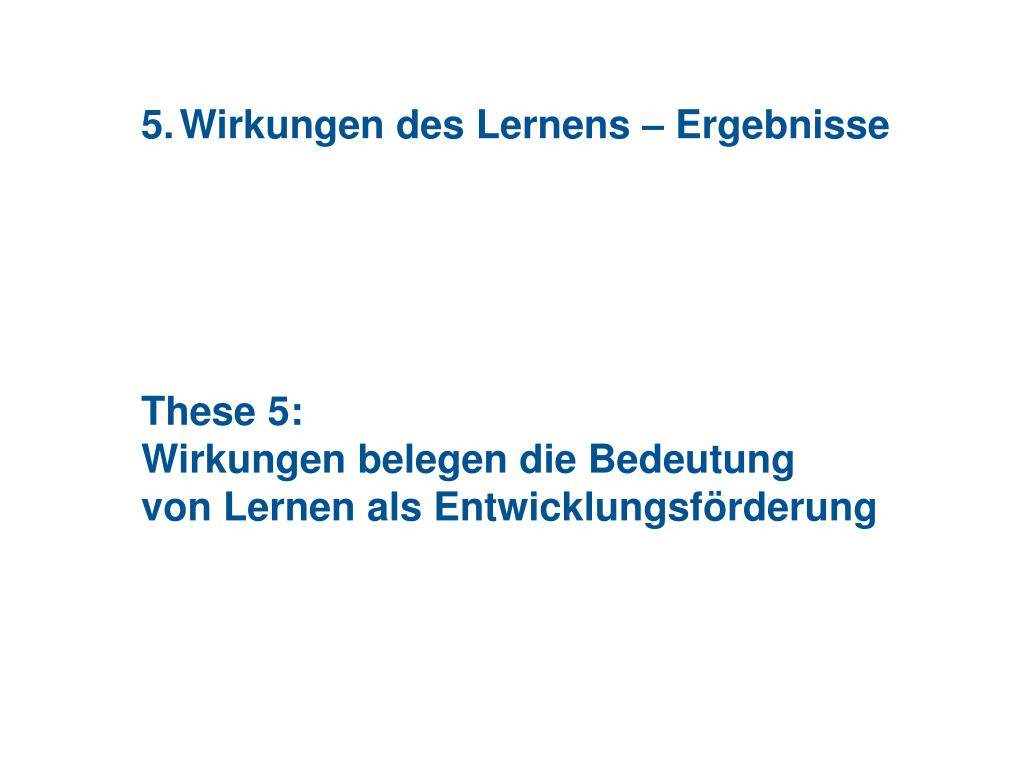 Wirkungen des Lernens – Ergebnisse • These 5: • Wirkungen belegen die Bedeutung • von Lernen als Entwicklungsförderung