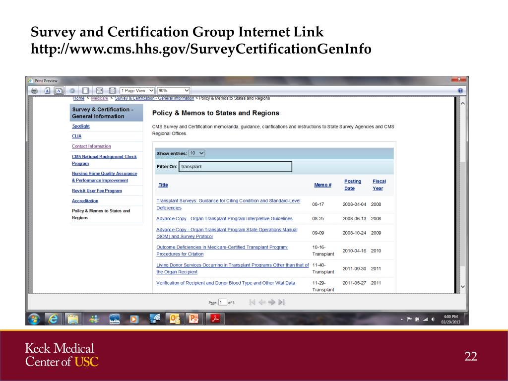 Survey and Certification Group Internet Link http://www.cms.hhs.gov/SurveyCertificationGenInfo
