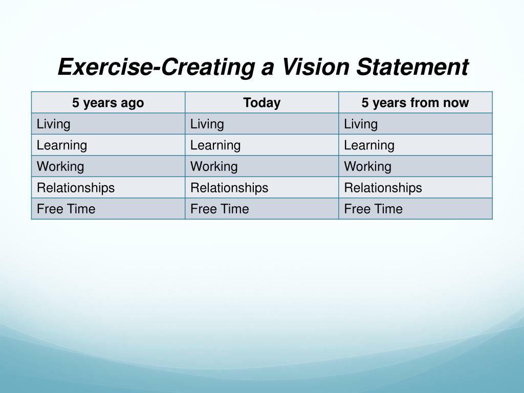 Defining a time frame for your child’s vision statement. Factors that influence the vision statement: Age Health Learning Motivation
