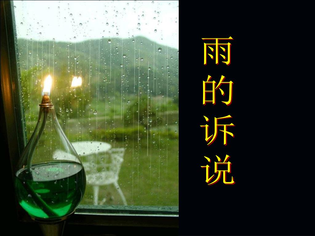SX7799@TOM.COM. 雨 的 诉 说. 试一试,请写出古诗词中含 “ 雨 ” 字的句子(至少两句)。. 试一试,请写出古诗词中含“雨”字的 句子(至少两句)。. 雨作为一种轻柔流动的物象,更是常常出现在词人的笔下,成了词人抒发个人感慨的有效载体。. 雨作为一种轻柔流动的物象,更是常常出现在词人的笔下,成了词人抒发个人感慨的有效载体。雨从一种不带有任何主观情意的自然现象到被刻意营造成中国文学中传统的抒情意象,其中融注了作者特有的感受、体验、情绪和心态,具有了丰富的人生意蕴和审美价值。. 我们一同来了解 “ 雨 ” 是如何博得诗词作者的青睐的 ?.