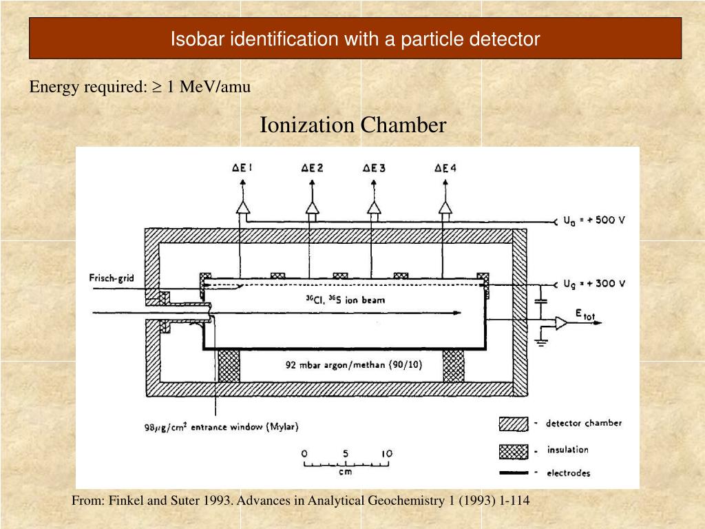 Isobar identification with a particle detector Energy required: 1 MeV/amu Ionization Chamber From: Finkel and Suter 1993. Advances in Analytical Geochemistry 1 (1993) 1-114