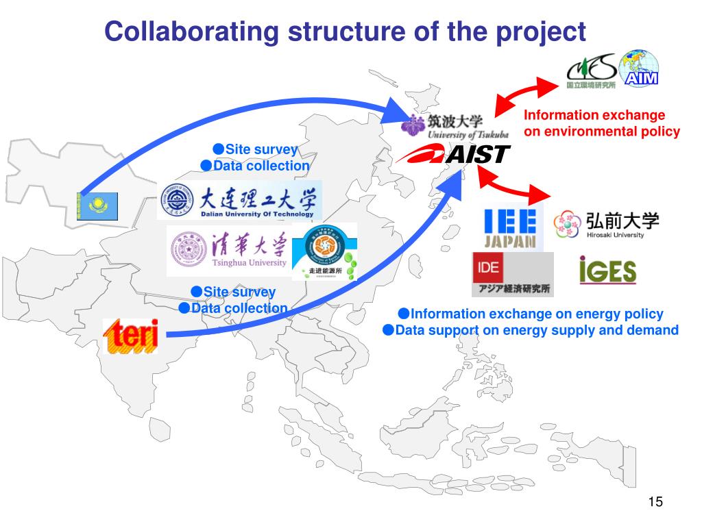 Collaborating structure of the project Information exchange on environmental policy ●Site survey ●Data collection ●Site survey ●Data collection ●Information exchange on energy policy ●Data support on energy supply and demand