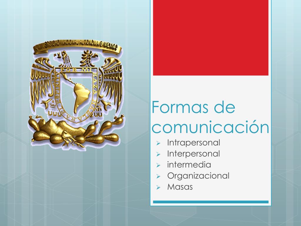 Formas de comunicación Intrapersonal Interpersonal intermedia Organizacional Masas