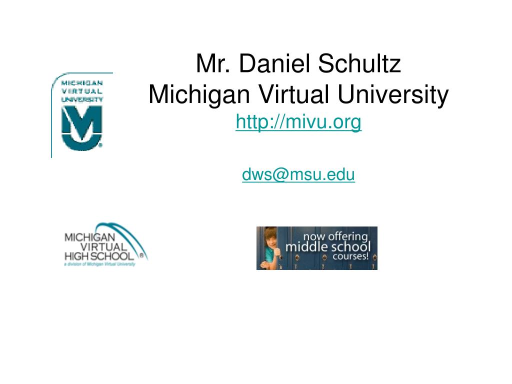 Mr. Daniel SchultzMichigan Virtual Universityhttp://mivu.orgdws@msu.edu