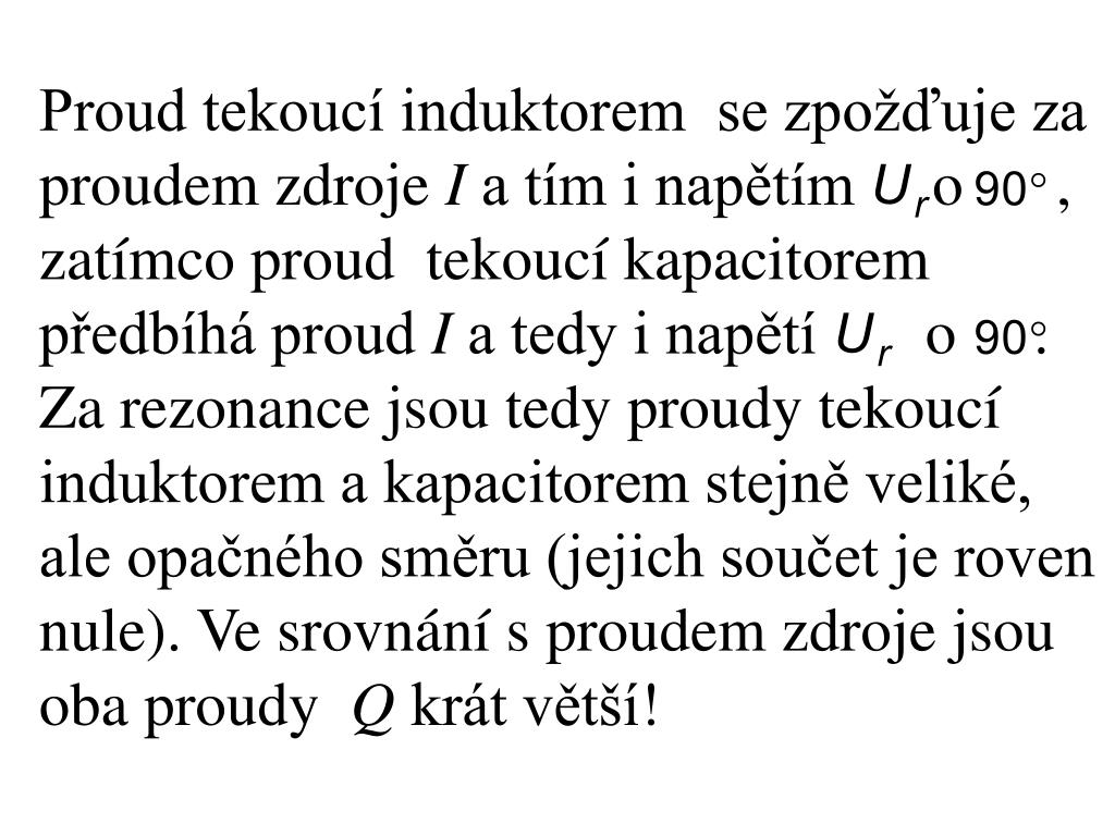 Proud tekoucí induktorem se zpožďuje za proudem zdroje I a tím i napětím o , zatímco proud tekoucí kapacitorem předbíhá proud I a tedy i napětí o . Za rezonance jsou tedy proudy tekoucí induktorem a kapacitorem stejně veliké, ale opačného směru (jejich součet je roven nule). Ve srovnání s proudem zdroje jsou oba proudy Qkrát větší!