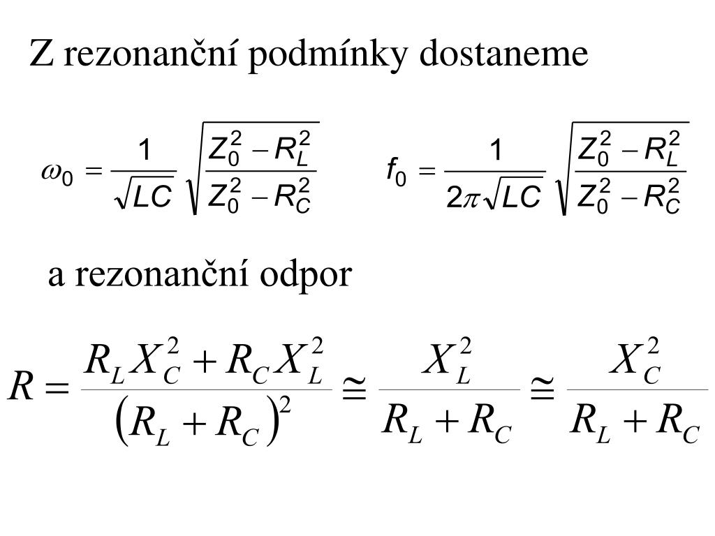 Z rezonanční podmínky dostaneme a rezonanční odpor
