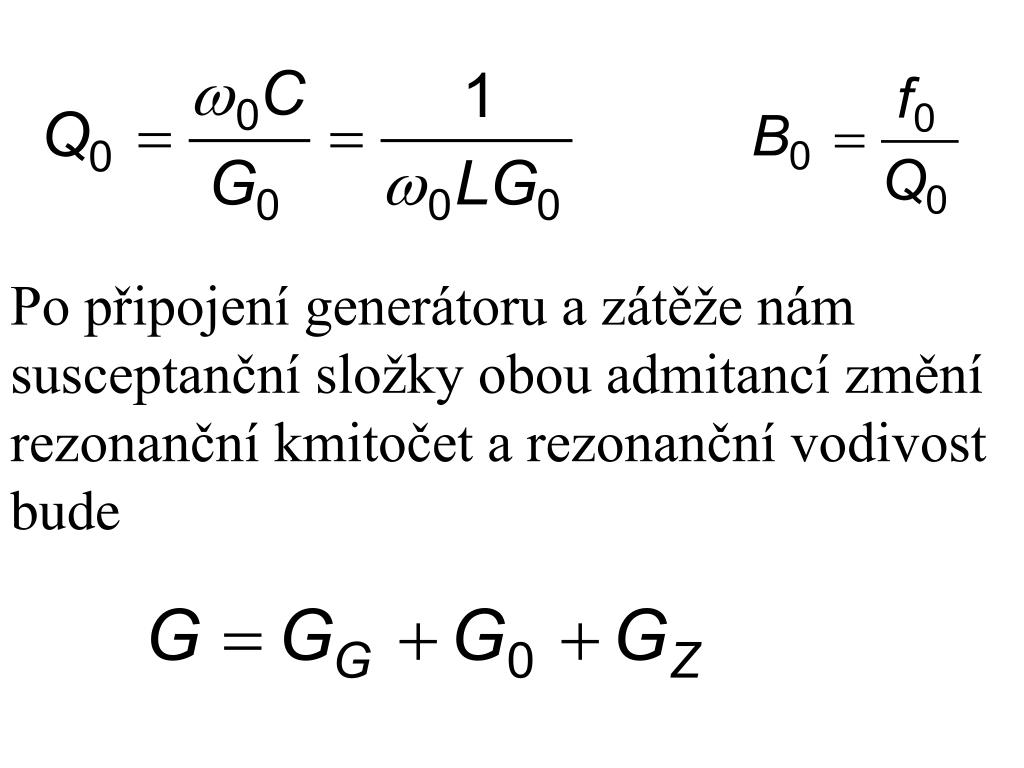 Po připojení generátoru a zátěže nám susceptanční složky obou admitancí změní rezonanční kmitočet a rezonanční vodivost bude