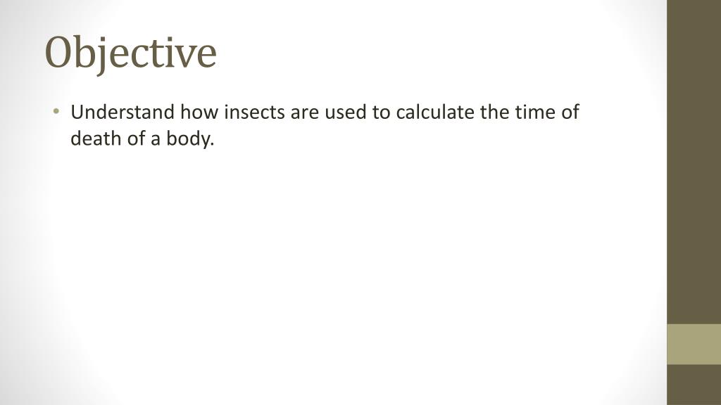 Objective • Understand how insects are used to calculate the time of death of a body.