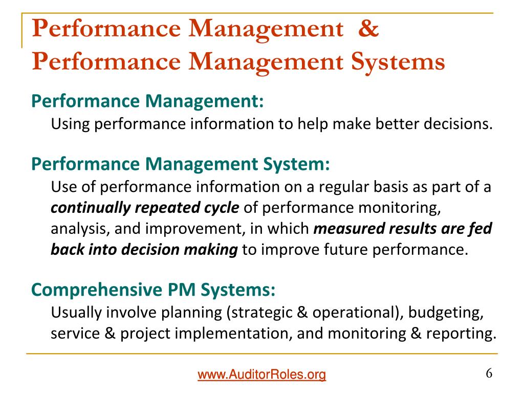 Audit Role – Performance Context • Performance Management • Performance Measurement • Performance Auditing