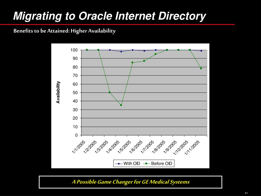 Migrating to Oracle Internet Directory Benefits to be Attained: Higher Availability A Possible Game Changer for GE Medical Systems