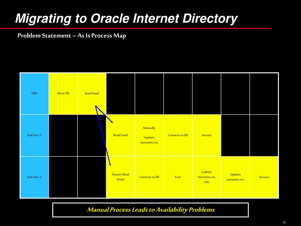 Migrating to Oracle Internet Directory Problem Statement – As Is Process Map Manual Process Leads to Availability Problems