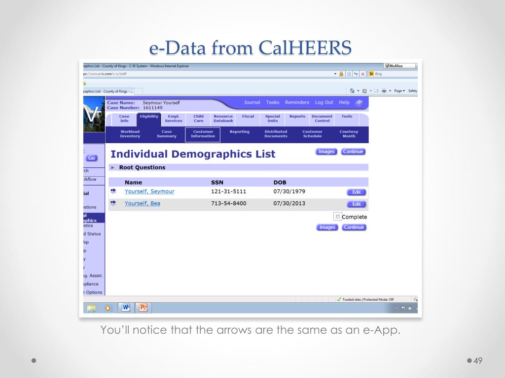 e-Data from CalHEERS You’ll notice that the arrows are the same as an e-App.