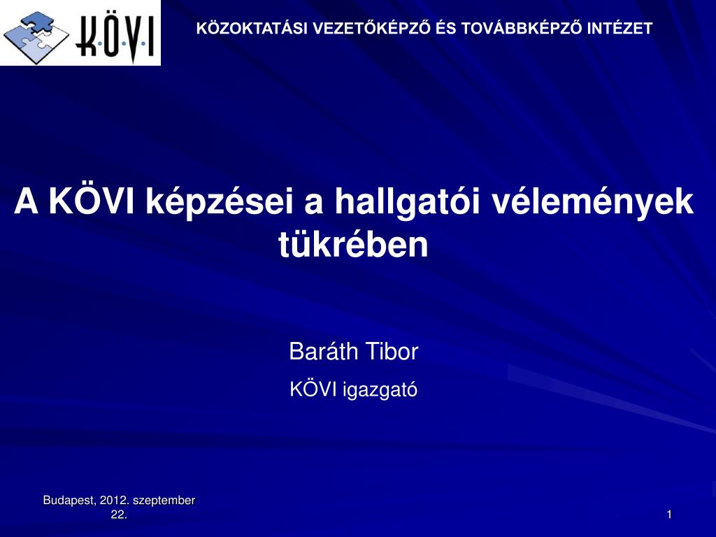 KÖZOKTATÁSI VEZETŐKÉPZŐ ÉS TOVÁBBKÉPZŐ INTÉZET A KÖVI képzései a hallgatói vélemények tükrében Baráth Tibor KÖVI igazgató