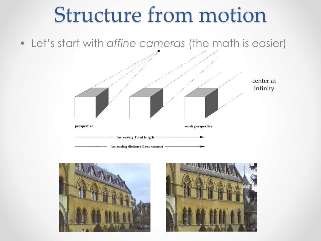 Structure from motion • Let’s start with affine cameras (the math is easier) center atinfinity