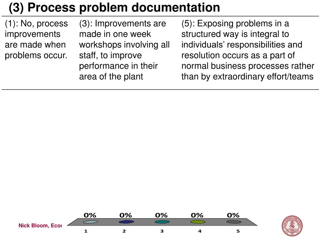 Economics of Human Resources. Nick Bloom (Stanford Economics) Lecture 2: Monitoring management. Performance management. Today we will run through 5 dimensions on performance management (questions 1 to 6 ) The concept is around the collection and use of information.