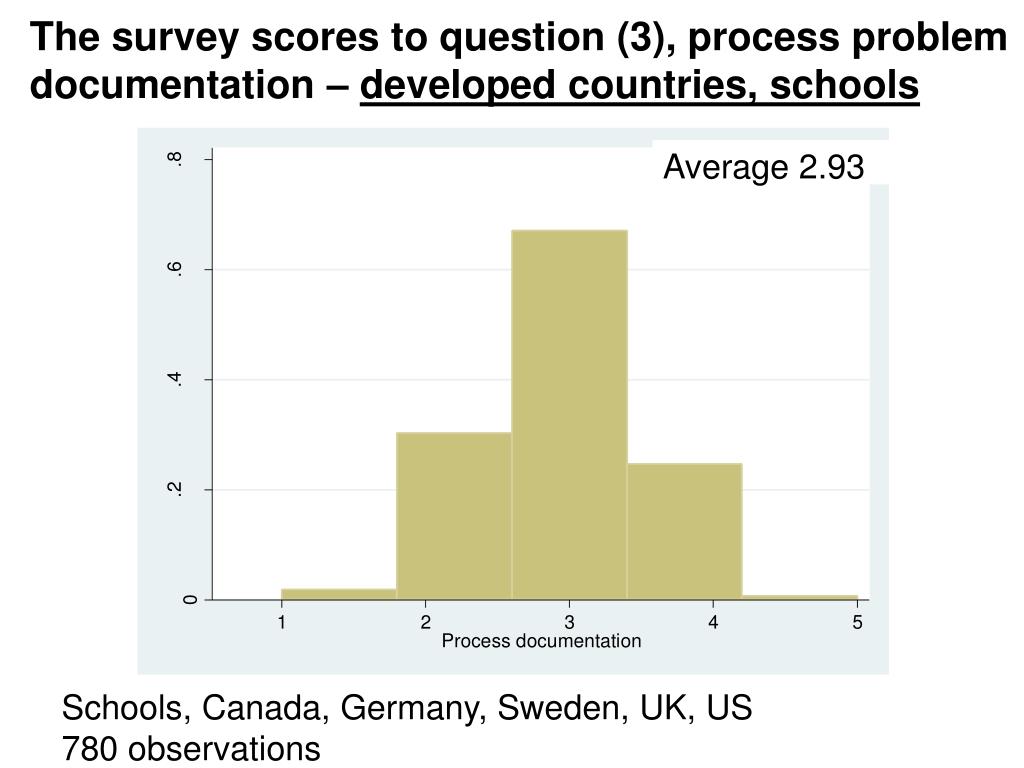 The survey scores to question (3), process problem documentation – developed countries, schools Average 2.93 Schools, Canada, Germany, Sweden, UK, US780 observations