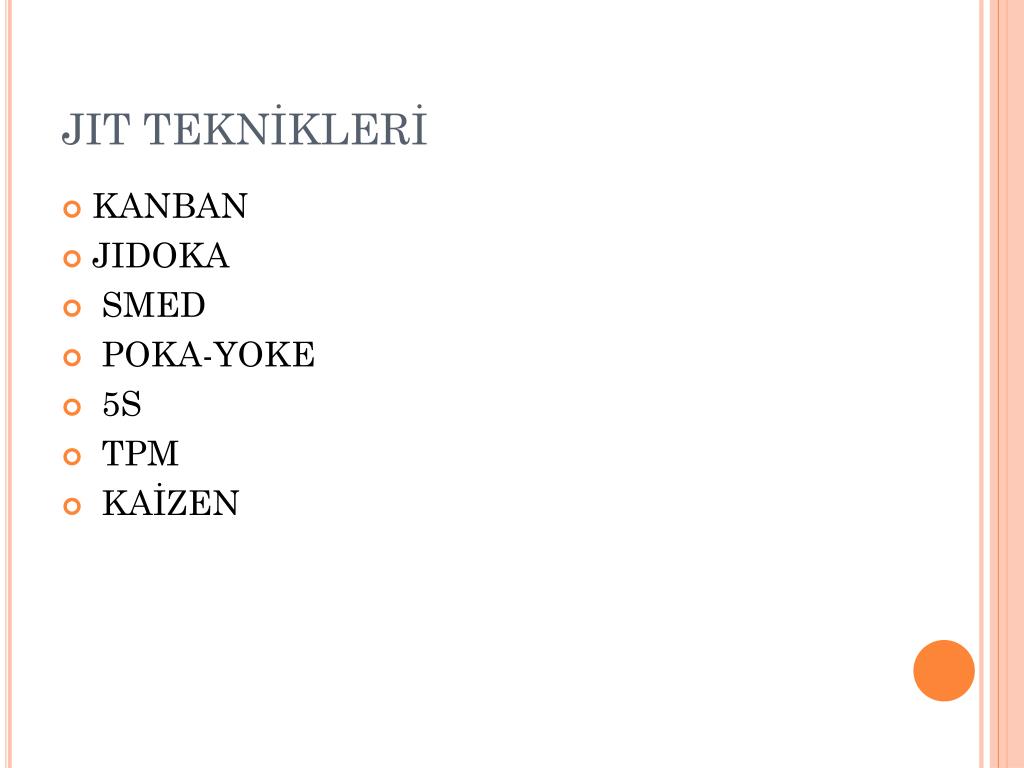 JIT TEKNİKLERİ • KANBAN • JIDOKA • SMED • POKA-YOKE • 5S • TPM • KAİZEN