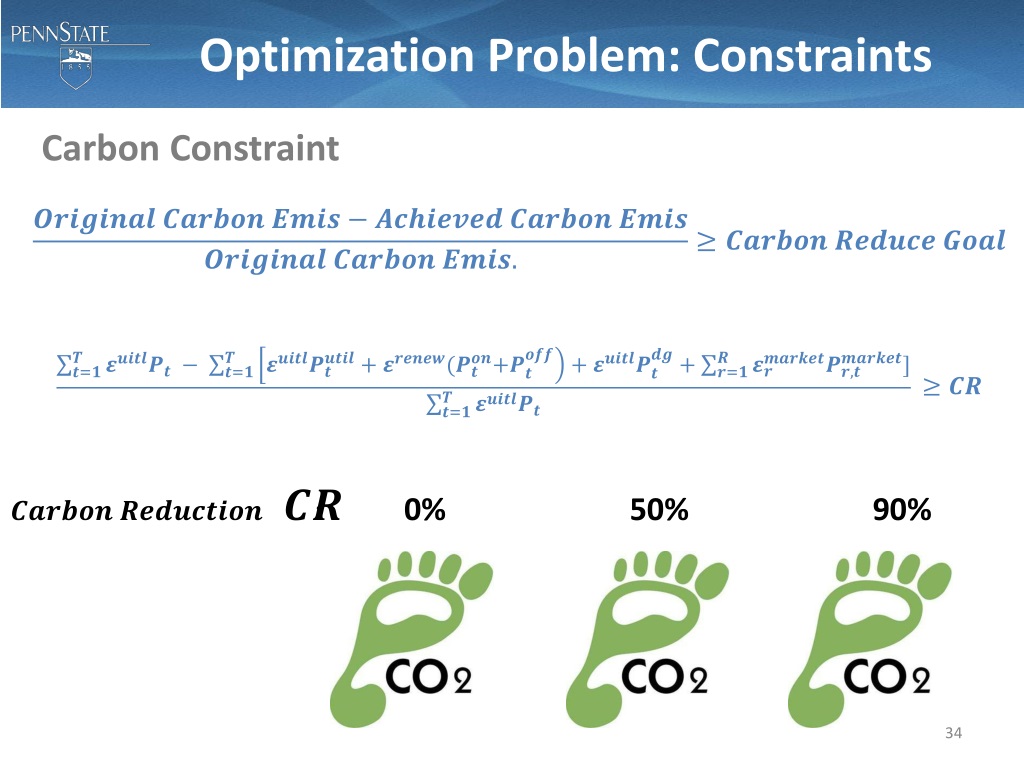 Optimization Problem: Constraints Carbon Constraint 0% 50% 90%