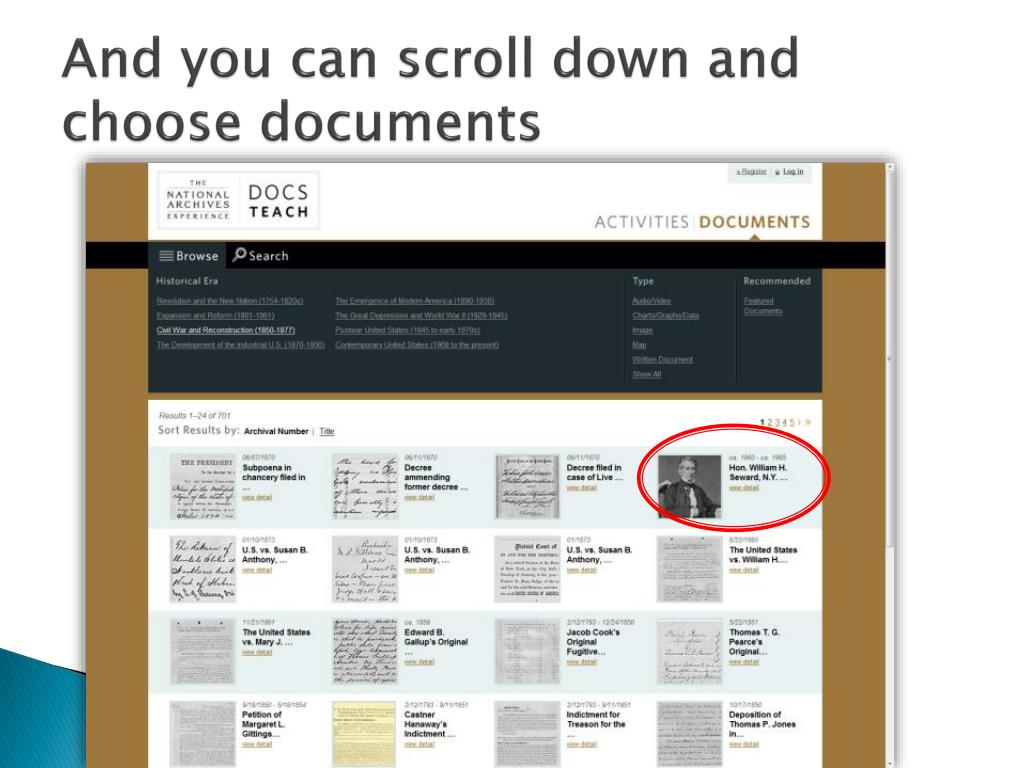 www.docsteach.org There are several places to find primary source documents on DocsTeach