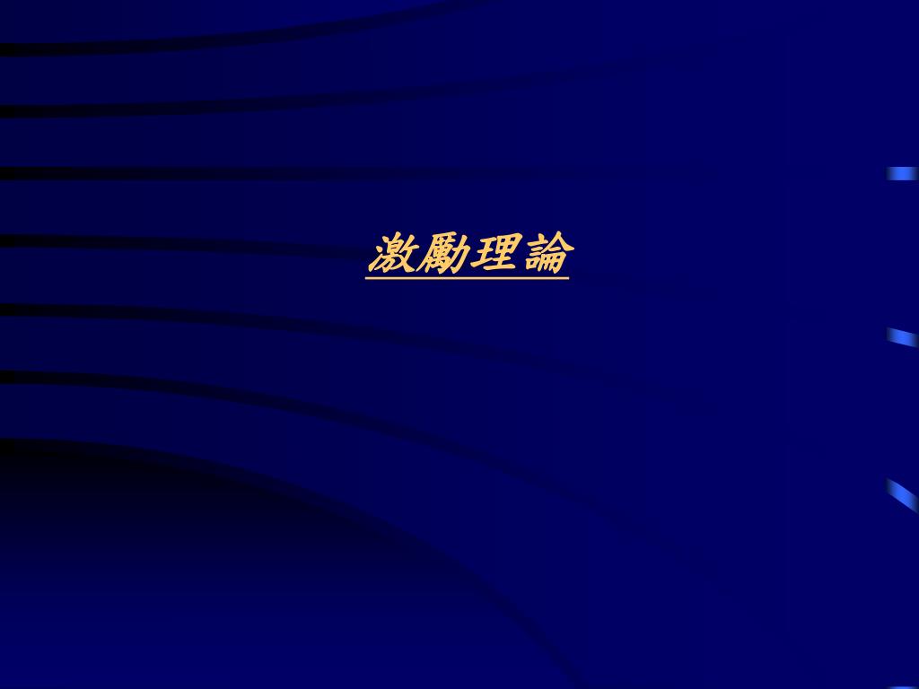 激勵理論 A 、激勵 1. 激勵的意義 2. 激勵過程 B 、早期激勵理論 1. 需求層級理論 理論與 Y 理論 2. X 3. 激勵—保健理論 C 、當代激勵理論 理論 1. ERG 2. 三需求理論 3. 認知評價理論 4 . 目標設定理論 5. 公平理論 6. 期望理論 D 、管理應用