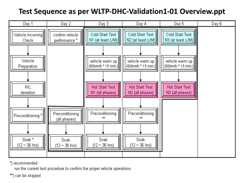 WLTP-DHC-10-13. WLTP-DHC Validation Phase I Results and Recommendations by India . DHC Subgroup 10 th Meeting - VTF Meeting 11 – 13 th Oct 2011, Brussels . Test Sequence as per WLTP-DHC-Validation1-01 Overview.ppt. Test Sequence actually followed for Validation I. *) Recommended