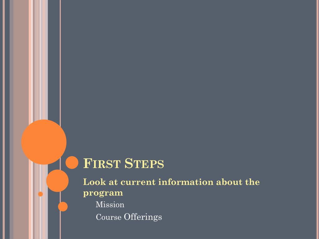 First Steps Look at current information about the program Mission Course Offerings