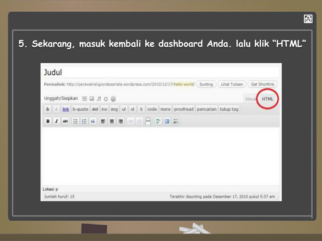 5. Sekarang, masuk kembali ke dashboard Anda. lalu klik “HTML”
