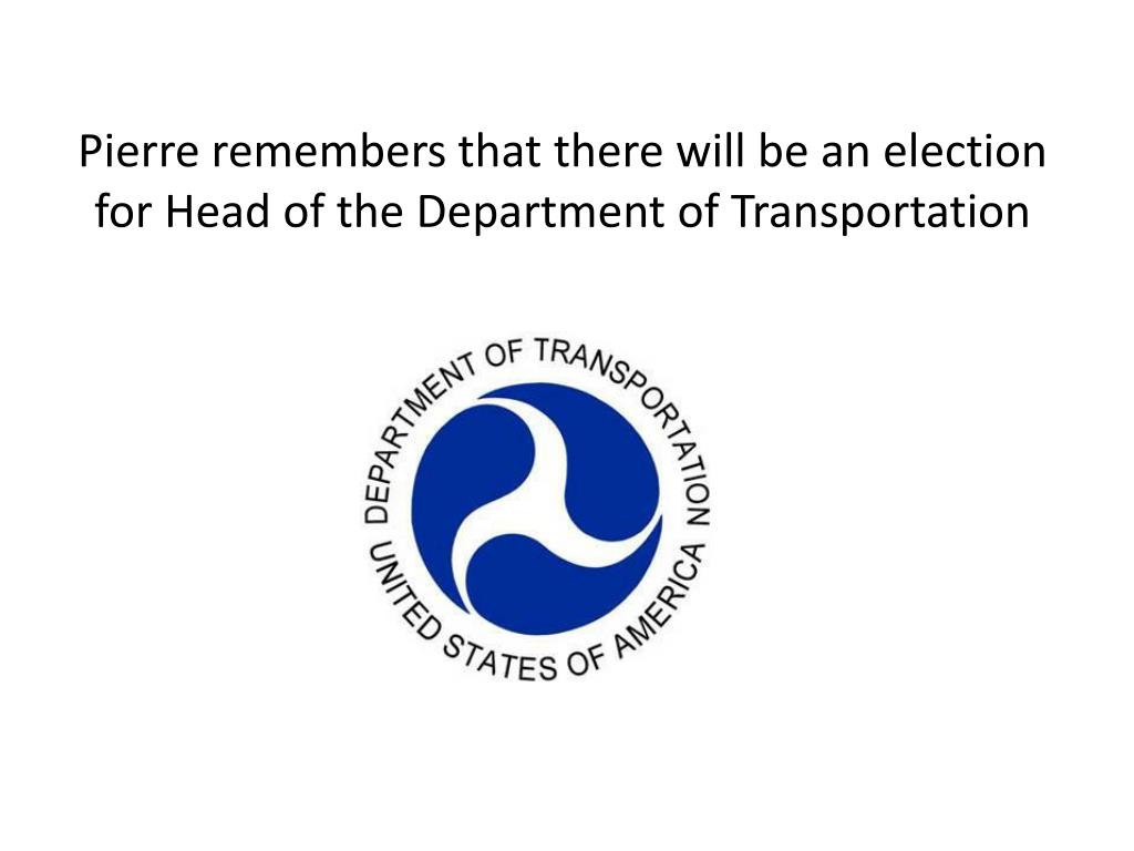 Pierre remembers that there will be an election for Head of the Department of Transportation