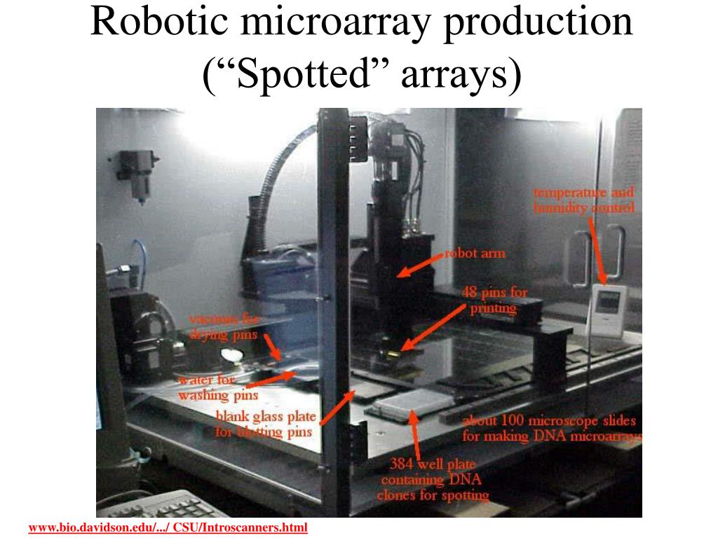 Robotic microarray production (“Spotted” arrays) www.bio.davidson.edu/.../ CSU/Introscanners.html