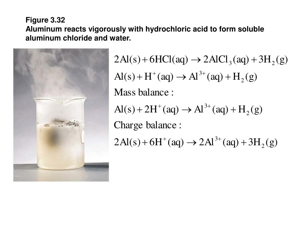Figure 3.32 Aluminum reacts vigorously with hydrochloric acid to form soluble aluminum chloride and water.