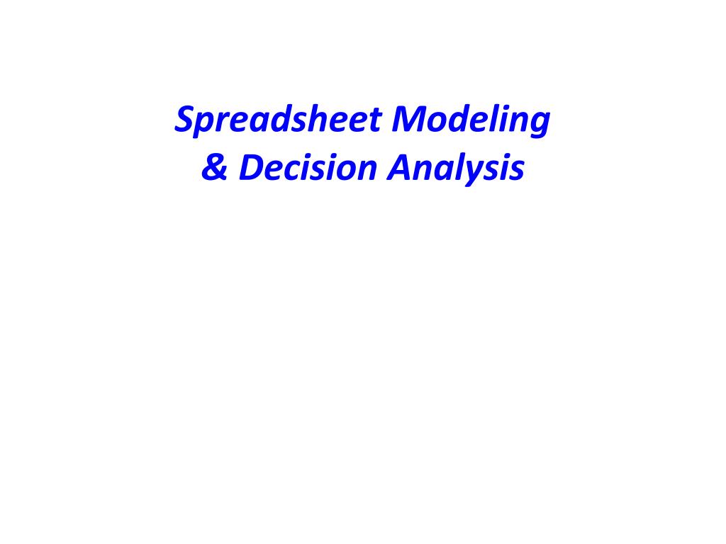 Spreadsheet Modeling & Decision Analysis. Introduction to Decision Analysis. Models help managers gain insight and understanding, but they can’t make decisions. Decision making often remains a difficult task due to: Uncertainty regarding the future Conflicting values or objectives