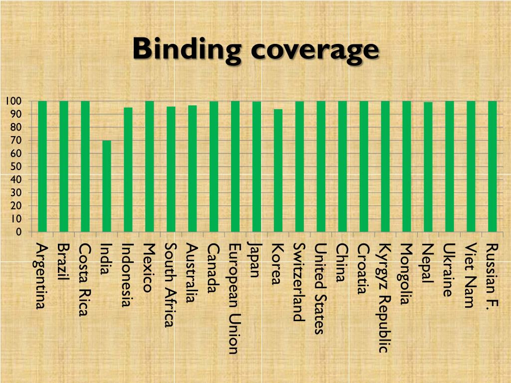 15% bound duty level Goods negotiations • Bound tariffs are the basis for negotiations • Final bound rates close to applied levels • Transition periods accepted for sensitive items • Good arguments needed for protection of tariffs • Flexibility tools: transitional periods, special safeguard (SSG), tariff-rate quotas, specific duties 5% applied duty level 0%