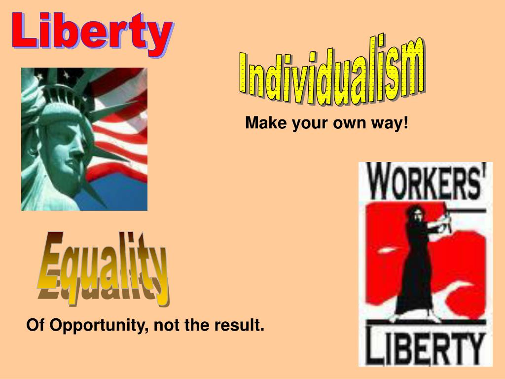Liberty Individualism Make your own way! Equality Of Opportunity, not the result.